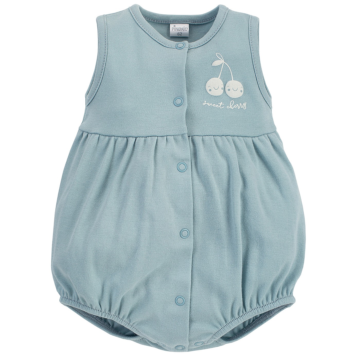 Pajac je narejen iz mehkega bombažnega materiala z gumbki po celotni dolžini in v mednožju, da otroka lahko lažje oblečete.